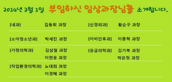 [소식] 대우병원 새로운 의료진 대폭 보강! 페이지 정보 대우병원 작성일14-03-03 12:21 조회86,299회 댓글0건 본문 상세보기 > http://blog.naver.com/tosk75/100206421676 이전글 다음글 목록