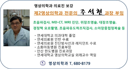 [소식]제2영상의학과 전문의 주석현 과장 부임 페이지 정보 대우병원 작성일13-12-19 08:38 조회77,751회 댓글0건 본문 [소식]제2영상의학과 전문의 주석현 과장 부임 이전글 다음글 목록