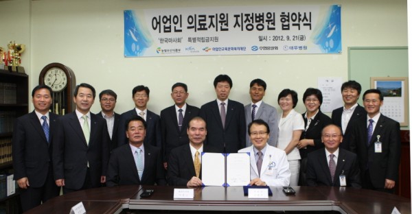 수협중앙회 어업인교육문화복지재단과 거제수협, 대우병원은 지난 21일 지정병원 협약식을 갖고 지리적으로 의료서비스 사각지대에 놓인 어업인을 위한 의료서비스 및 의료봉사활동을 지원해 어촌 복지 실현에 앞장서 나가기로 했다고 밝혔다.