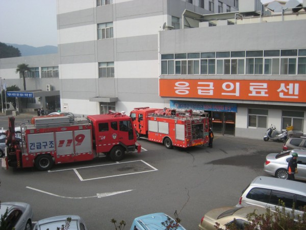 지난 12월 7일 본원은 거제소방서와 합동 소방훈련을 실시하였다. 이번 훈련은 평소 자위대를 편성하여 각 반마다 수행할 업무내용을 파악하고 이를 테스트 하여 만일에 발생할 화재 사고를 대비하기 위해 실시되었다.