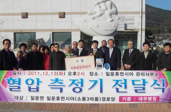본원은 지난 12월 13일 일운면 주공아파트 노인정에 4번째 자동혈압측정기를 기증하였다.