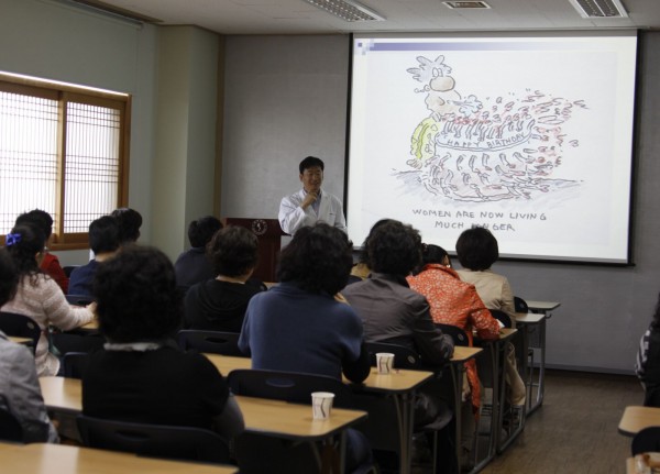 4월 29일 본원 대강당에서 대우조선해양 주부봉사대 회원 30여명을 초청하여 “생활습관 개선을통한효과적인 노화관리”라는 주제로 건강강좌를 실시하였다.