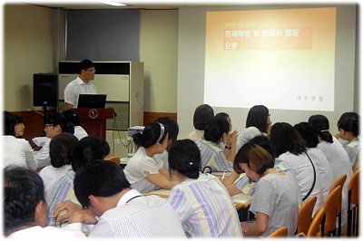 이번 소방교육에서는 소화기 및 소화전 등의 소화시설 사용법을 교육하였다. 또한 병원의 경우 화재시 큰 피해가 우려되는 만큼 화재 예방을 위해 힘써야 하며, 평상시에 초기 소화방법, 대피유도 방법 등을 숙지하고 있어야 화재시 피해를 최소화할 수 있음을 강조하였다.